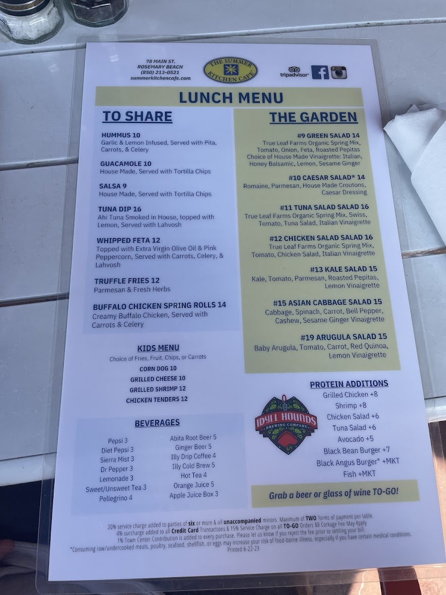 Welcome to Summer Kitchen Cafe Rosemary Beach, a charming eatery located just steps from the beach at 78 Main St, Rosemary Beach, FL. This delightful cafe is perfect for families and friends looking to enjoy a meal in a relaxed outdoor setting. The menu features a range of options from classic breakfast dishes to satisfying lunch fare.